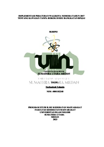 Yolanda, Nurhazizah (2023) Implementasi Peraturan Walikota Nomor 6 Tahun 2017 Tentang Kawasan Tanpa Rokok Di RSU Bangkatan Binjai. Skripsi thesis, State Islamic University of North Sumatera.