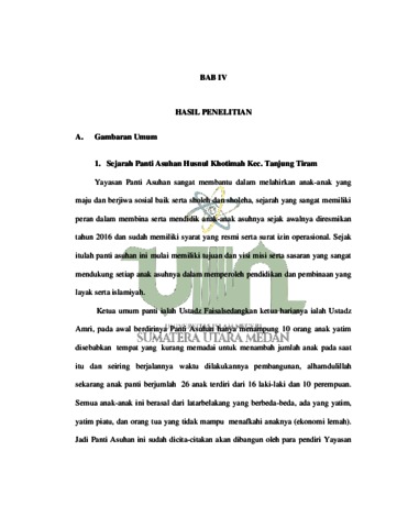 Sholihat Aziz, Nur Azizah (2021) Bimbingan Ustadz dan Ustadzah Dalam Membina Akhlak Anak Asuh di Panti Asuhan Husnul Khotimah Kecamatan Tanjung Tiram Kabupaten Batu Bara. Skripsi thesis, State Islamic University of North Sumatera.