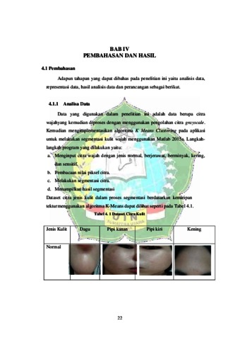 Segmentasi Citra Wajah Berdasarkan Tekstur Kulit Menggunakan Metode K-Means Clustering