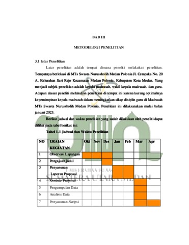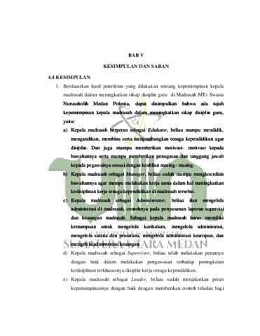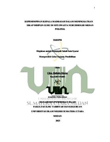 Sitorus, Citra Malinda (2023) Kepemimpinan Kepala Madrasah Dalam Meningkatkan Sikap Disiplin Guru Di MTs Swasta Nurussholih Medan Polonia. Skripsi thesis, State Islamic University of North Sumatera.