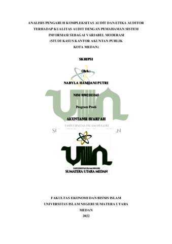 Putri, Nabyla Hamdani (2022) Analisis Pengaruh Kompleksitas Audit dan Etika Auditor Terhadap Kualitas Audit dengan Pemahaman Sistem Informasi Sebagai Variabel Moderasi (Studi Kasus Kantor Akuntan Publik Kota Medan). Skripsi thesis, State Islamic University of North Sumatera.