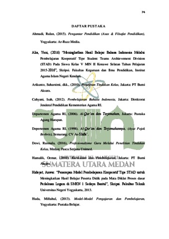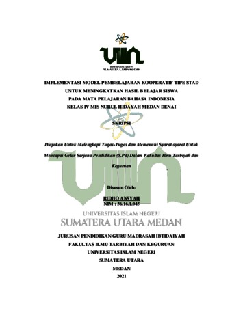 Ansyah, Ridho (2021) Implementasi Model Pembelajaran Kooperatif Tipe STAD untuk Meningkatkan Hasil Belajar Siswa Pada Mata Pelajaran Bahasa Indonesia Kelas IV MIS Nurul Hidayah Medan Denai. Skripsi thesis, State Islamic University of North Sumatera.