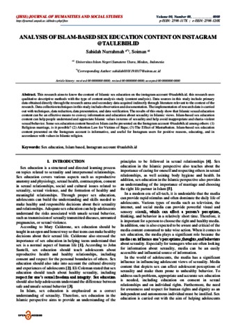 Nurrahmah, Sahidah and Soiman, Soiman Analysis Of Islam-Based Sex Education Content On Instagram @TAULEBIH.ID. (JHSS) JOURNAL OF HUMANITIES AND SOCIAL STUDIES, 00 (00). ISSN 2598-117X