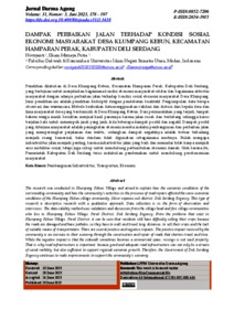 Penelitian dilakukan di Desa Klumpang Kebun, Kecamatan Hamparan Perak, Kabupaten Deli Serdang, yang bertujuan untuk menjelaskan bagaimana kondisi ekonomi masyarakat sekitar dan bagaimana aktivitas masyarakat dengan adanya perbaikan jalan terhadap kondisi sosial ekonomi masyarakat Desa Klumpang. Jenis penelitian ini adalah penelitian deskriptif dengan pendekatan kualitatif. Pengumpulan data berupa observasi dan wawancara. Metode keabsahan data menggunakan validasi dan diskusi dari kepala desa dan lima masyarakat desa yang berdomisili di Desa Klumpang Kebun. Dari permasalahan yang terjadi, tampak bahwa warga masih kesulitan menjual hasil panennya karena jalan rusak dan berlubang sehingga harus berjalan kaki untuk menempuh jarak yang jauh. Ada beberapa dampak positif dan negatif. Dampak positif yang diterima masyarakat adalah peningkatan ekonomi mereka melalui pembangunan dan perbaikan jalan yang mempersingkat perjalanan dan waktu, sedangkan dampak negatifnya adalah trotoar terkadang menjadi ruang komersial, balas dendam tidak digunakan sebagaimana mestinya. Itulah mengapa infrastruktur jalan menjadi penting, karena infrastruktur jalan yang baik dan memadai tidak hanya menjadi arus mobilitas sosial, tetapi juga cukup untuk mendukung pertumbuhan ekonomi daerah. Oleh karena itu, Pemerintah Kabupaten Deli Serdang terus melakukan pembenahan untuk mendukung perekonomian masyarakat.