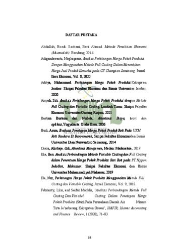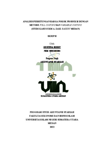 Rizky, Gustina (2022) Analisis Perhitungan Harga Pokok Produksi dengan Metode Full Costing dan Variable Costing (Studi Kasus UKM A. ZAKI Bakery Medan). Skripsi thesis, Universitas Islam Negeri Sumatera Utara Medan.
