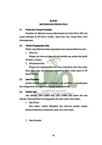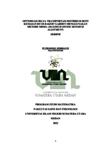 Febriyanti, Putri Rizky (2022) Optimisasi Biaya Transportasi Distribusi Roti Kemasan Di UD Bakery Garden Menggunakan Metode MDMA (Maximum Divide Minimum Allotment). Skripsi thesis, State Islamic University of North Sumatera.