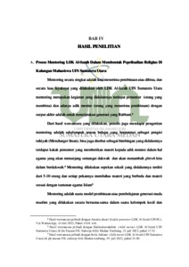 Penelitian ini bertujuan untuk mengetahui implementasi mentoring dilembaga dakwah kampus LDK Al-Izzah dalam membentuk kepribadian religious dikalangan mahasiswaUIN sumatera utara, untuk mengetahui proses pelaksanaanya dan tekhnik yang digunakan, serta mengetahui hambatan-hambatan yang terjadi pada saat proses mentoring, dan mengetahui keberhasilan mentoringdi dalam membentuk kepribadian religius dikalangan mahasiswa UINSU.Penelitian ini merupakanjenis penelitian kualitatif tekhnik pengumpulan data yang digunakan adalah wawancara, observasi, dan dokumentasi yang diperoleh langsung dari sasaran penelitian maupun catatan dari sumber yang terkait dengan penelitian. Hasil temuan penelitian ini ialah : Pertama. Pelaksanaan mentoring yang terjadi di Lembaga Dakwah Kampus Al-Izzah UINSU biasanya terdiri dari 3-12 orang dalam satu kelompok, dilaksanakan setiap satu pecan sekali, dengan cara bertahap diantaranya yaitu pembukaan, ice breaking, materi, diskusi dan kesimpulan, evaluasi dan penutupan. Kedua, hasil yang didapat tekait hambatanatau kendala saat pelaksaan mentoring di Lembaga Dakwah Kampus Al�Izzah UINSU biasanya adalah waktu yang sering bentrokan atara pementor dan mentee, pementor yang biasanya memiliki lebih dari satu kelompok binaan sehingga pementor kurang bisa membagi waktu, kurangnya ilmu pementor dalam mengelola kelompok mentoring yang sudah di amanahkan, kurangnya SDM sumber daya manusia yang mampu untuk dijadikan seorang pementor. Ketiga, Hasil yang didapatkan setelah mengikuti mentoring, bertambahnya teman baru (ukhuwah atau persaudaraan) para mentee menjadi lebih aktif dan kritis, menambah ilmu dan wawasan yang luas, dan adanya perubahan dalam diri mentee yang lebih baik kearah yang positif baik secara syariat islam dan juga kehidupan sosialnya, perubahan diri adik menee adalah target utama dan penting terutama pada aspek ruhiyah dan budi pekerti yang baik.