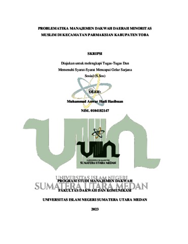 Hasibuan, Muhammad Anwar Hadi (2023) Problematika Manajemen Dakwah Daerah Minoritas Muslim di Kecamatan Parmaksian Kabupaten Toba. Skripsi thesis, Universitas Islam Negeri Sumatera Utara Medan.
