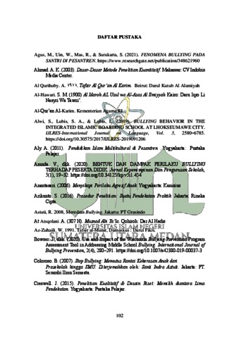 Saragih, Muhammad Rizki Dermawan (2023) MANAJEMEN PESANTREN DALAM MENGATASI PERUNDUNGAN DI PESANTREN KABUPATEN DELI SERDANG. Masters thesis, State Islamic University of North Sumatera.