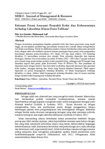 Susmita, Dita Ayu and Arif, Muhmmmad (2023) Estimasi Premi Asuransi Penyakit Kritis dan Koherensinya terhadap Likuiditas Klaim Dana Tabbaru'. SEIKO : Journal of Management & Busines, 6. ISSN 2598-831X