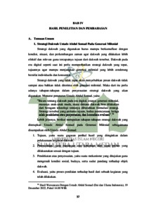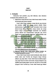 Penelitian ini bertujuan untuk mengetahui implementasi strategi dakwahUstadz Abdul Somad melalui YouTube dan Instagram pada generasi milenial dan untuk mengetahui efektivitas dakwah Ustadz Abdul Somad melalui YouTube dan Instagram pada generasi milenial. Ustadz Abdul Somad merupakan dai terkenal di Indonesia yang memiliki banyak pengikut di media sosial. Dalam penelitian ini, penulis akan menganalisis konten dan akun dakwah Ustadz AbdulSomadyaitu Youtube dan Instagram. Jenis penelitian ini adalah penelitian kualitatif melalui pendekatan deskriptif. Sumber data penelitian ini terdiri dari dua, yaitu sumber data primer dan sumber data sekunder. Teknik pengumpulan data dalam penelitian ini adalah wawancara, observasi, dan dokumentasi.Hasil penelitian menunjukkan bahwa, Ustadz Abdul Somad melakukan strategi dakwah yang terencana dan terstruktur dengan baik terhadap generasi milenial. Ustadz Abdul Somad menerapkan bentuk strategi dakwah berupa strategi sentimental, strategi rasional, dan startegi indrawi dengan mempertimbangkan karakteristik dan kebutuhan generasi milenial. Hal tersebut terbukti cukup efektif dalam menarik perhatian dan keterlibatan generasi milenial dalam mengenal nilai-nilai Islam. Terbukti sebagaimana sebanyak 39,2%penonton (viewers) YouTube Ustadz Abdul Somad Channel berusia 25-34 tahun, kemudian sebanyak 47,5% pengikut (followers) pada akun Instagram @ustadzabdulsomad_official berusia 25-34 tahun.