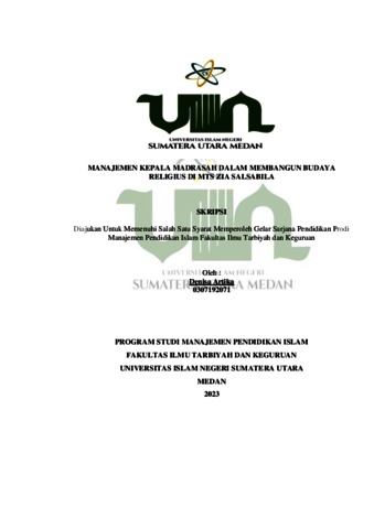 Artika, Denisa (2023) Manajemen Kepala Madrasah Dalam Membangun Budaya Religius di MTS Zia Salsabila. Skripsi thesis, Universitas Islam Negeri Sumatera Utara.