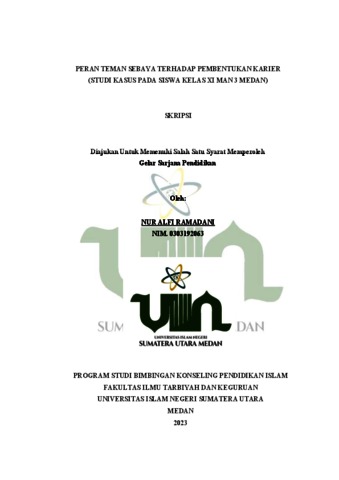 Ramadani, Nur Alfi (2023) Peran Teman Sebaya Terhadap Pembentukan Karier (Studi Kasus Pada Siswa Kelas XI MAN 3 Medan). Skripsi thesis, State Islamic University of North Sumatera.