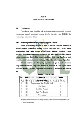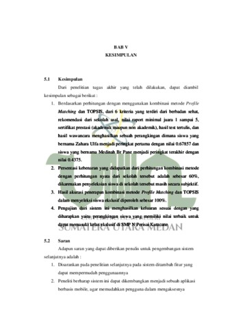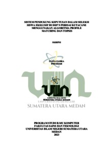 Zahra, Ulfia (2023) Sistem Pendukung Keputusan Dalam Seleksi Siswa Ekslusif dI SMP N Perisai Kutacane Menggunakan Algoritma Profile MATCHING DAN TOPSIS. Skripsi thesis, Universitas Islam Negeri Sumatera Utara Medan.