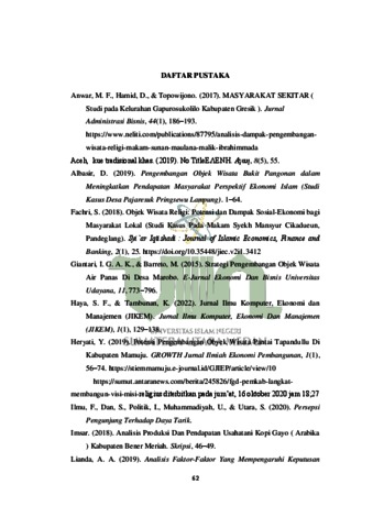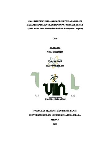 Faridani, Faridani (2022) ANALISIS PENGEMBANGAN OBJEK WISATA RELIGI DALAM MENINGKATKAN PENDAPATAN MASYARKAT (Studi Kasus Desa Babussalam Besilam Kabupaten Langkat). Skripsi thesis, State Islamic University of North Sumatera.