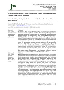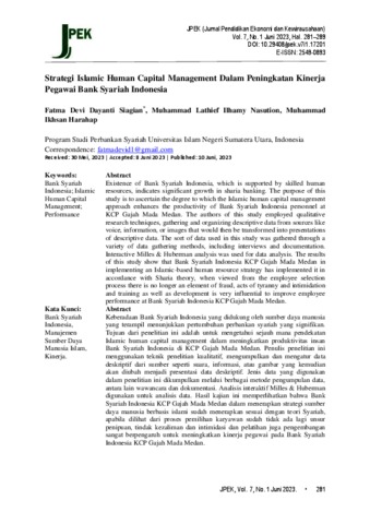Siagian, Fatma Dewvi Dayanti and Nasution, Muhammad Lathief ilhany and Harahap, Muhammad Ikhsan Strategi Islamic Human Capital Management Dalam Peningkatan Kinerja Pegawai Bank Syariah Indonesia. JPEK (Jurnal Pendidikan Ekonomi dan Kewirausahaan), 7. pp. 281-289. ISSN 2549-0893