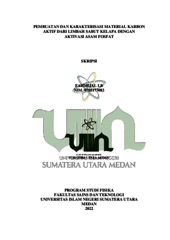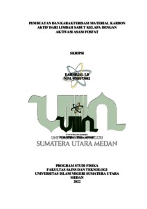 LB, Fahmijal (2022) PEMBUATAN DAN KARAKTERISASI MATERIAL KARBON AKTIF DARI LIMBAH SABUT KELAPA DENGANAKTIVASI ASAM FOSFAT. Skripsi thesis, State Islamic University of North Sumatera.