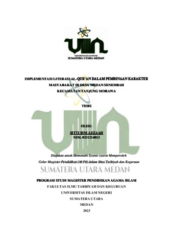 Azzaah, Sitti Isni (2023) IMPLEMENTASI LITERASI AL-QUR’AN DALAM PEMBINAAN KARAKTER MASYARAKAT DI DESA MEDAN SENEMBAH KECAMATAN TANJUNG MORAWA. Skripsi thesis, State Islamic University of North Sumatera.