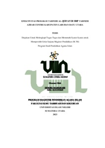 Markhabi, Fhiqri (2023) Efektivitas Program Tahfizh Al-Qur'an Di SMP Tahfizh Azhar Centre Kabupaten Labuhan Batu Utara. Masters thesis, State Islamic University of North Sumatera.