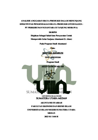Khairuni, Dini Vira (2023) Analisis Anggaran Biaya Produksi Dalam Menunjang Efektivitas Pengendalian Biaya Produksi (Studi Kasus : PT Perkebunan Nusantara II Tanjung Morawa). Skripsi thesis, State Islamic University of North Sumatera.