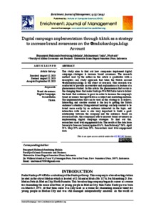 Meliala, Bunayyati Hakimah Sembiring and Yafiz, Muhammad and Nurbaiti, Nurbaiti (2023) Digital campaign implementation through tiktok as a strategy to increase brand awareness on the @radiokardopa.kdigi Account. Enrichment: Journal of Management, 13 (3). pp. 2325-2334. ISSN 2087-6327
