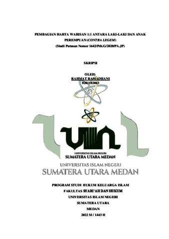 Ramadhani, Rahmat (2022) Pembagian Harta Warisan 1:1 Antara Laki-laki dan Anak Perempuan (Contra Legem). Skripsi thesis, Universitas Negeri Sumatera Utara.