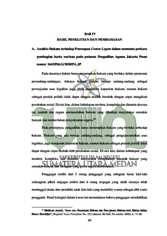 Salah satu tugas dan fungsi mahkamah agama ialah menyelesaikan perselisihan harta pusaka bagi orang Islam. Dalam menentukan hukum pusaka, hakim berpandukan kepada perundangan semasa iaitu al-Quran dan Hadis serta pendapat ulama terdahulu. Sekiranya undang-undang dan peraturan ini menimbulkan ketidakadilan, maka hakim harus memihak kepada keadilan dalam masyarakat dengan mengenepikan undangundang atau peraturan undang-undang, prinsip undang-undang ini boleh dipanggil contra legem. Salah satu keputusan pengadilan agama yang hakimnya mengikuti praktik kontra legem adalah putusan Pengadilan Agama Jakarta Pusat No. 1642/Pdt.G/2020/PA.JP. Dalam keputusannya, hakim menentukan pembahagian harta pusaka antara anak lelaki dan perempuan dalam jumlah yang sama atau 1:1. Rumusan masalah pada penelitian ini adalah bagaimana pembagian harta warisan berdasarkan Kompilasi Hukum Islam, bagaimana pendangan hakim sehingga memutuskan perkawa nomor 1642/Pdt.G/2020/P.JP tentang warisan secara contra legem, bagaimana analisis hukum terhadap penerapan contra legem dalam memutus perkara pembagian warisan pada putusan PA Jakarta Pusat nomor 1642/Pdt.G/2020/PA.JP. Jenis penelitian yang digunakan adalah penelitian yuridis normatif atau penelitian kepustakaan yaitu kajian terhadap putusan PA Jakarta Pusat nomor 1642/Pdt.G/2020/PA.JP. Hasil kajian ini didapati dalam KHI, yang menyatakan bahawa di bawah Perkara 176, seorang gadis mendapat separuh bahagian jika dia bersendirian, dua pertiga jika dua atau lebih, dan seorang perempuan jika dia bersama lelaki, bahagiannya adalah. dua lawan satu untuk perempuan. Penghakiman hakim dalam Perkara No. 1642/Pdt.G/2020/PA.JP adalah berdasarkan prinsip penggantian Islam 2:1 antara lelaki dan wanita, tetapi selain prinsip penggantian Islam, hakim juga dianggap prinsip tanggungjawab kerana dia bukan hanya seorang lelaki, Kemudian dia mendapat hak warisan, dan jika seorang lelaki lebih bertanggungjawab kepada ibu bapanya daripada anak perempuannya, dia berhak mendapat dua kali ganda bahagian anak perempuan. Penggunaan undang-undang balas oleh hakim dalam prosiding probet dalam Kes No. 1642/Pdt.G/2020/PA.JP adalah pelaksanaan undang-undang yang progresif. Menurut Satjipto Rahardjo, kriteria undang-undang progresif termasuk: 1) matlamat besar kesejahteraan dan kebahagiaan manusia; bergerak secara praktikal dan juga secara teori; 4) kritikal dan berfungsi