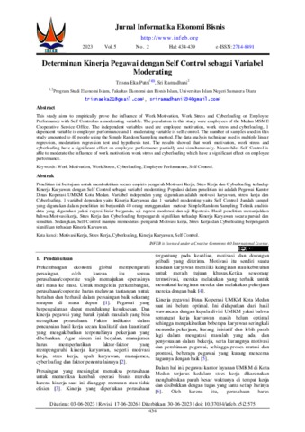 Putri, Trisna Eka and Ramadhani, Sri (2023) Determinan Kinerja Pegawai dengan Self Control sebagai Variabel Moderating. Jurnal Informatika Ekonomi Bisnis, 5 (2). pp. 434-439. ISSN 2714-8491