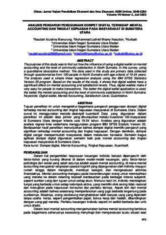 Tujuan penelitian ini untuk mengetahui bagaimana pengaruh penggunaan dompet digital terhadap mental accounting dan tingkat kepuasan masyarakat di Sumatera Utara. Dalam survei ini, menggunakan metode deskriptif kuantitatif. Data yang digunakan dalam penelitian ini adalah data primer yang dikumpulkan melalui kuesioner 100 masyarakat di Sumatera Utara dengan kriteria usia 19-24 tahun. Analisis yang digunakan adalah analisis regresi linier sederhana menggunakan program IBM SPSS Statistic Version 25. Berdasarkan hasil penelitian menunjukkan bahwa dompet digital memiliki pengaruh yang signifikan terhadap mental accounting dan tingkat kepuasan. Dengan demikian, dompet digital sangat mempermudah masyarakat dalam melakukan transaksi. Semakin bagus aplikasi dompet digital digunakan semakin baik pula mental accounting dan tingkat kepuasan masyarakat di Sumatera Utara.