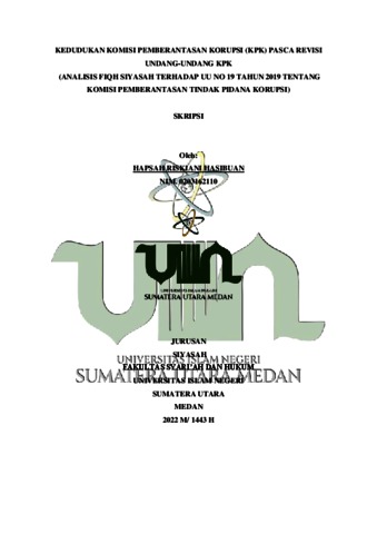 Hasibuan, Hapsah Riskiani (2022) KEDUDUKAN KOMISI PEMBERANTASAN KORUPSI (KPK) PASCA REVISI UNDANG-UNDANG KPK (ANALISIS FIQH SIYASAH TERHADAP UU NO 19 TAHUN 2019 TENTANG KOMISI PEMBERANTASAN TINDAK PIDANA KORUPSI). Skripsi thesis, Universitas Islam Negeri Sumatera Utara.