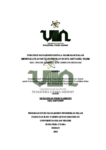Nahrowi, Muhammad Fikri (2023) Strategi Manajemen Kepala Madrasah Dalam Meningkatkan Mutu Pendidikan Di MTS. Miftahul 'Ulum Kec. Dolok Masihul Kab. Serdang Bedagai. Skripsi thesis, State Islamic University of North Sumatera.