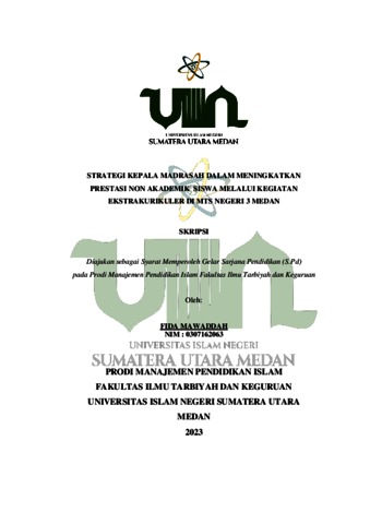 MAWADDAH, FIDA (2023) Strategi Kepala Madrasah Dalam Meningkatkan Prestasi Non Akademik Siswa Melalui Kegiatan Ekstrakurikuler Di MTs Negeri 3 Medan. Skripsi thesis, Universitas Islam Negeri Sumatera Utara Medan.