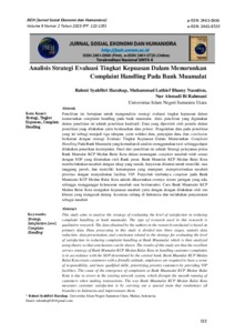 Analisis Strategi Evaluasi Tingkat Kepuasan Dalam Menurunkan Complaint Handling Pada Bank Muamalat
