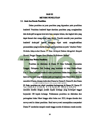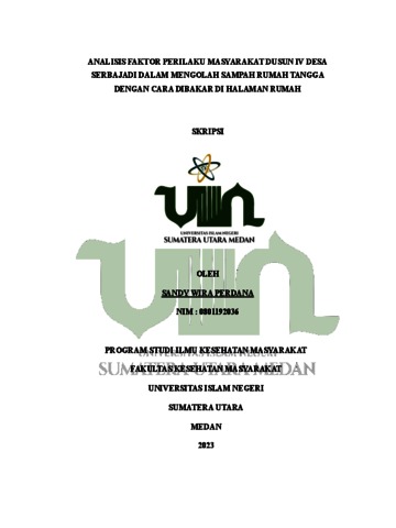 Perdana, Sandy Wira (2023) Hubungan Faktor Perilaku Masyarakat Dusun IV Desa Serbajadi Dalam Mengolah Sampah Rumah Tangga Dengan Cara Dibakar Di Halaman Rumah. Skripsi thesis, Universitas Islam Negeri Sumatera Utara.