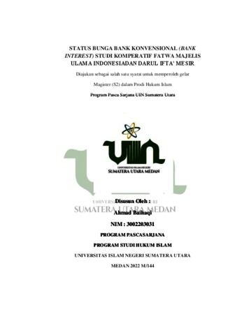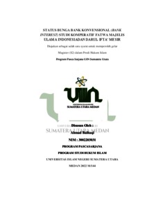 Baihaqi, Ahmad (2022) STATUS BUNGA BANK KONVENSIONAL (BANK INTEREST) STUDI KOMPERATIF FATWA MAJELIS ULAMA INDONESIADAN DARUL IFTA’ MESIR. Masters thesis, North Sumatra State Islamic University, Medan.