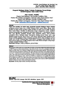 Tujuan dari penelitian ini adalah untuk mengetahui pengaruh bimbingan belajar terhadap peningkatan prestasi belajar siswa di SMP Perguruan Islam Amalia Medan. Metode dalam peneltian ini adalah metode kuantitatif. Subjek penelitian ini adalah siswa/i di SMP Perguruan Islam Amalia Medan. Penelitian ini dilaksanakan dengan menggunakan metode kuantitatif. Instrumen pengambilan data menggunakan skala linkert dengan skor 1- 4 dan pedoman obervasi. Data yang diperoleh selanjutnya dianalisis untuk mengetahui nilainya. Hasil penelitian menunjukan bahwa bimbingan belajar berpengaruh terhadap prestasi belajar siswa yang dibuktikan dengan besarnya nilai R Square, yaitu sebesar 0,628 pada tingkat signifikansi 0,05. Dengan demikian bimbingan belajar mempunyai pengaruh 60,5% dalam peningkatan prestasi belajar siswa di SMP Perguruan Islam Amalia Medan. Kesimpulan dalam penelitian ini yaitu bahwa prestasi belajar siswa di SMP Perguruan Islam Amalia Medan meningkat seiring dengan seringnya mengikuti bimbingan belajar.