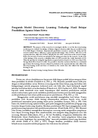 | Uncontrolled Keywords: | Discovery learning, learning outcomes, islamic education. |