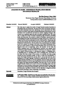 Kusuma, Eka Dian (2023) ANALYSIS OF ARABIC - INDONESIAN TRANSLATION ERRORS ON GOOGLE TRANSLATE. Published by Institut Agama Islam Sunan Giri (INSURI) Ponorogo; Indonesia Accredited Sinta 3, 5 (2). pp. 1-13.
