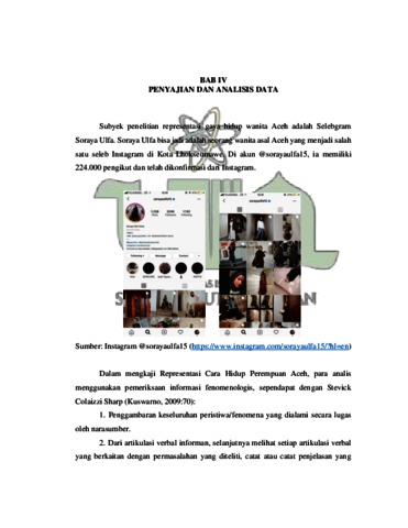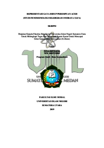 Septiana, Fina (2019) REPRESENTASI GAYA HIDUP PEREMPUAN ACEH (STUDI FENOMENOLOGI SELEBGRAM @SORAYA ULFA). Skripsi thesis, Universitas Islam Negeri Sumatera Utara.