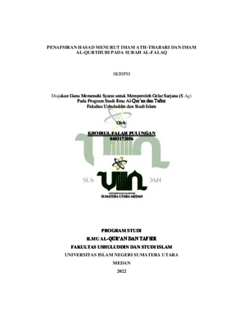 Pulungan, Khoirul Falah and Zuhri, Ahmad and Damanik, Nurliana (2023) Penafsiran Hasd Menurut Imam At- Thabari dan Imam Al- Qurthubi. Skripsi thesis, Universitas Negeri Islam Sumatera Utara Medan.