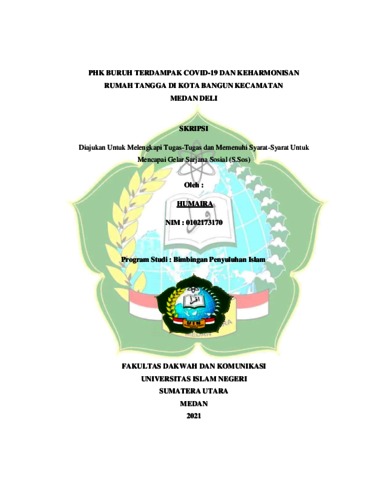 Humaira, Humaira (2023) PHK BURUH TERDAMPAK COVID-19 DAN KEHARMONISAN RUMAH TANGGA DI KOTA BANGUN KECAMATAN MEDAN DELI. Skripsi thesis, State Islamic University of North Sumatera.