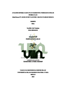 Tanjung, Syarifah Aini and Kamilah, Kamilah and Nurbaity, Nurbaity (2023) Analisis Kinerja Karyawan Marketing Terhadap Jumlah Pembiayaan (Studi Kasus PT. Bank Sumut Kantor Cabang Syariah Medan). Skripsi thesis, Universitas Negeri Islam Sumatera Utara Medan.