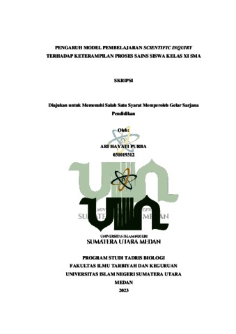 Purba, Ari Hayati (2023) PENGARUH MODEL PEMBELAJARAN SCIENTIFIC INQUIRY TERHADAP KETERAMPILAN PROSES SAINS SISWA KELAS XI SMA. Skripsi thesis, State Islamic University of North Sumatera.