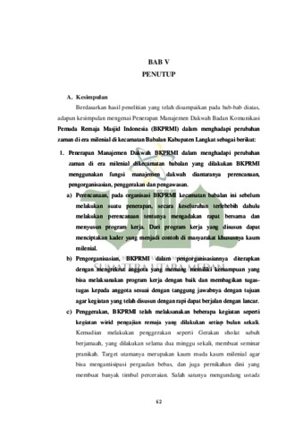 PENERAPAN MANAJEMEN DAKWAH BADAN KOMUNIKASI PEMUDA REMAJA MASJID INDONESIA (BKPRMI) DALAM MENGHADAPIPERUBAHAN ZAMAN DI ERA MILENIAL DI KECAMATAN BABALAN KABUPATEN LANGKAT
