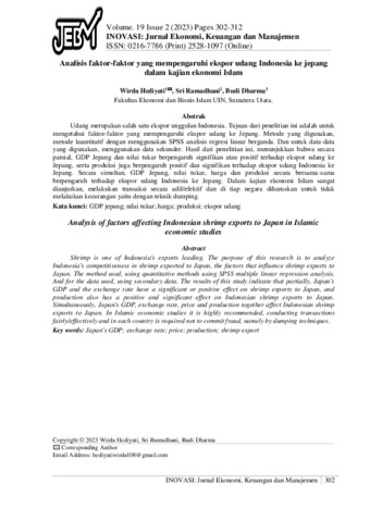Hediyati, Wirda and Ramadhani, Sri and Dharma, Budi Analisis faktor-faktor yang mempengaruhi ekspor udang Indonesia ke jepang dalam kajian ekonomi Islam. Analisis faktor-faktor yang mempengaruhi ekspor udang Indonesia ke jepang dalam kajian ekonomi Islam.