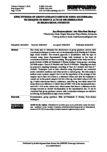 This study aims to determine the effectiveness of group guidance services with sociodrama techniques to reduce acts of discrimination in Al-Washliyah 22 Medan high school students. The research approach is Quantitative, with the type of research using Quasi Experimental Design with treatment in the form of sociodrama conducted six times a meeting. The population of the study was the Xgrade students of SMA Al-Washliyah 22 Medan totaling 2 study groups consisting of X MIA majors, Class A 32 Students and Class B 32 Students. Sampling was done by purposive sampling technique consisting of Class A 8 students and Class B 7 students. Techniques used in data collection using Experiments are conducted under controlled conditions and often involve a control group. The data analysis method used is paired sample t-test to test the hypothesis of the average of two samples and to find out if there is a difference before and after the treatment is carried out. In the paired sample t-test test, if the sig. two-tailed value is 0.05> the sig. 2-tailed value means there is a difference, and if the sig. two-tailed value> 0.05 means there is no difference. 2-tailed value of 0.000 < 0.05 in the experimental class, and 0.031 > 0.05 in the control class, which means that there is a difference in the average decrease in student discrimination in the experimental class. It can be concluded that group guidance services with sociodrama techniques are effective in reducing discrimination in high school students