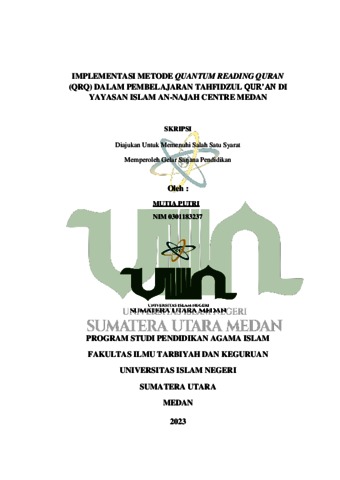 Putri, Mutia (2023) Implementasi Metode Quantum Reading Quran (QRQ) Dalam Pembelajaran Tahfidzul Quran di Yayasan Islam AnNajah Centre Medan. Skripsi thesis, Universitas Negeri Sumatera Utara Medan.