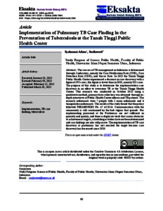 Adzra, syahrani (2023) Implementation of Pulmonary TB Case Finding in the Preventation of Tuberculosis at the Tanah Tinggi Public Health Center. Berkala Ilmiah idang MIPA, 24 (01). pp. 80-91. ISSN 2549-7464