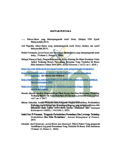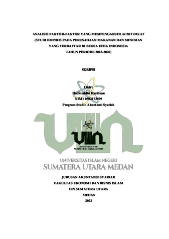 Hasibuan, Hadinuddin (2022) Analisis Faktor-Faktor Yang Mempengaruhi Audit Delay (Studi Empiris Pada Perusahaan Makanan Dan Minuman Yang Terdaftar Di Bursa Efek Indonesia Tahun Periode 2018-2020. Skripsi thesis, Universitas Islam Negeri Sumatera Medan.