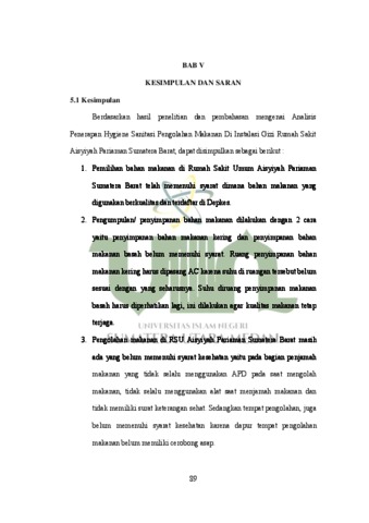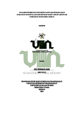 Sari, Ayu Permata and Nanda, Meutia (2023) Analisis Penerapan Hygiene Sanitasi Pengolahan Makanan di Instalasi Gizi Rumah Sakit Umum Aisyiyah Pariaman Sumatera Barat. Skripsi thesis, Universitas Negeri Islam Sumatera Utara Medan.